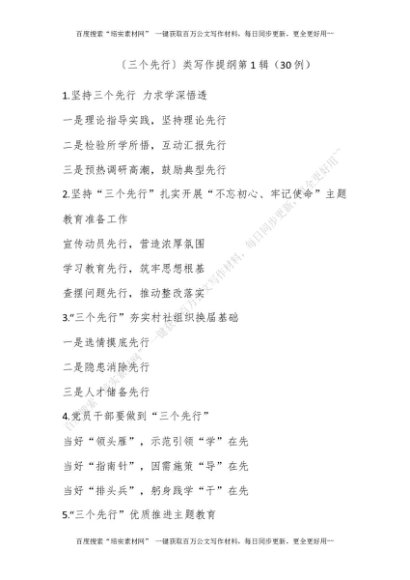 〔三个先行〕类写作提纲第1辑(30例)[更多资源请百度搜索“培实素材网”]