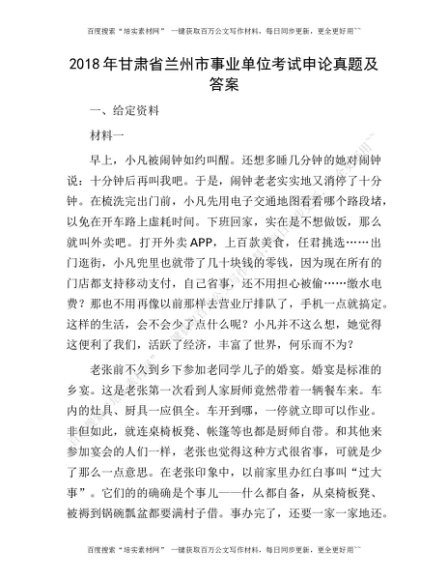 2018年甘肃省兰州市事业单位考试申论真题及答案(1)[更多资源请百度搜索“培实素材网”]
