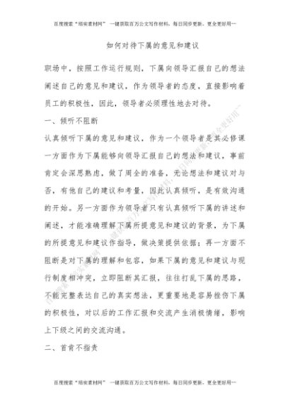 如何对待下属的意见和建议[更多资源请百度搜索“培实素材网”]