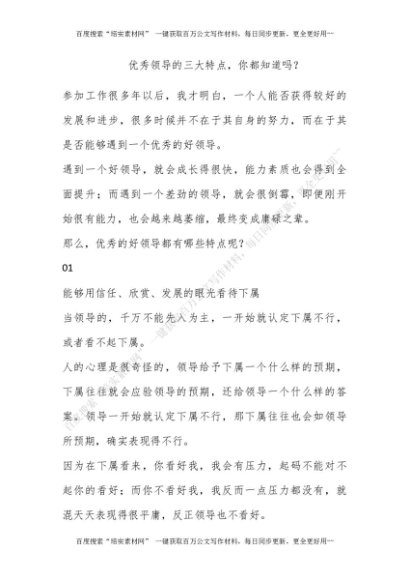 优秀领导的三大特点,你都知道吗?[更多资源请百度搜索“培实素材网”]