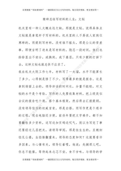 精辟总结写材料的人生:文秘[更多资源请百度搜索“培实素材网”]