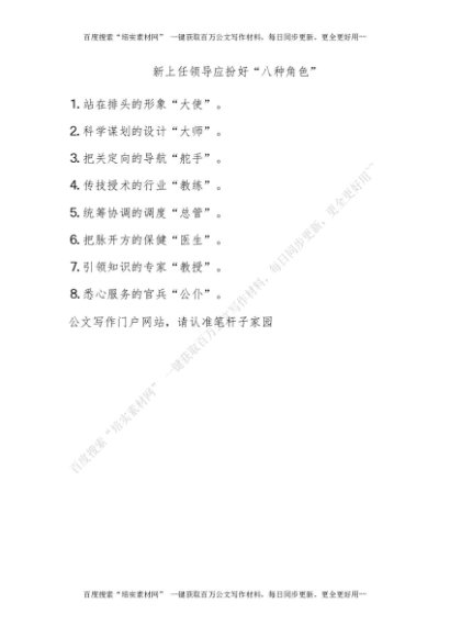 新上任领导应扮好“八种角色”[更多资源请百度搜索“培实素材网”]