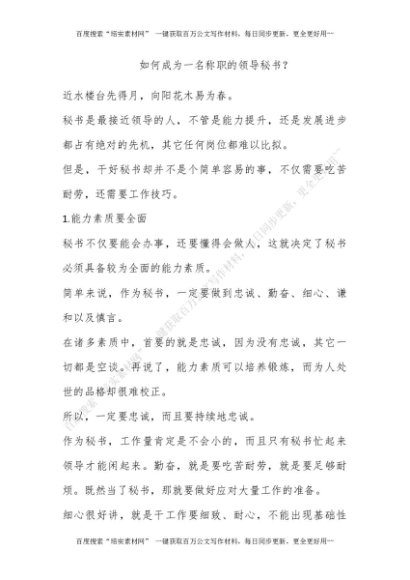 如何成为一名称职的领导秘书?[更多资源请百度搜索“培实素材网”]