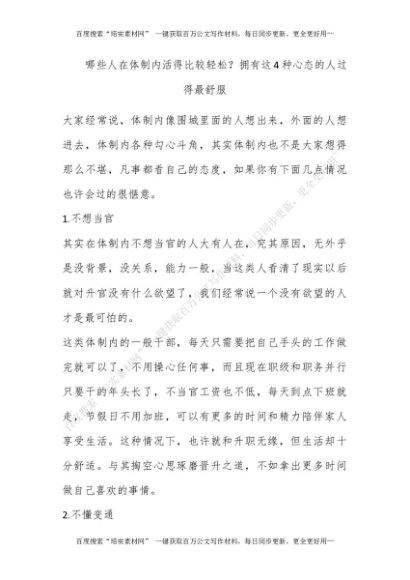 哪些人在体制内活得比较轻松?拥有这4种心态的人过得最舒服![更多资源请百度搜索“培实素材网”]