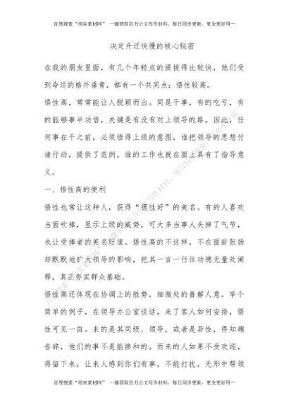 决定升迁快慢的核心秘密![更多资源请百度搜索“培实素材网”]