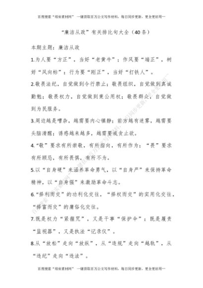 “廉洁从政”有关排比句大全(40条)[更多资源请百度搜索“培实素材网”]