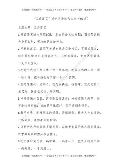 “工作落实”类有关排比句大全(40条)[更多资源请百度搜索“培实素材网”]