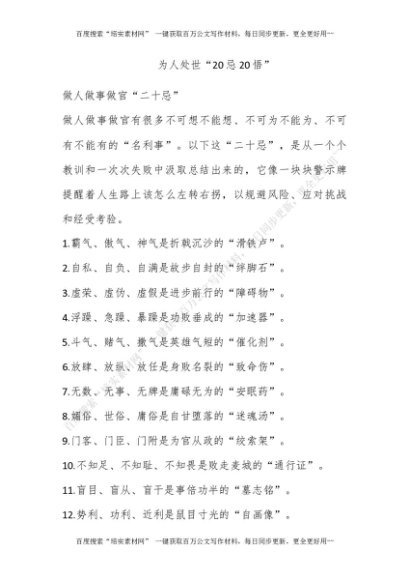 为人处世“20忌20悟”[更多资源请百度搜索“培实素材网”]