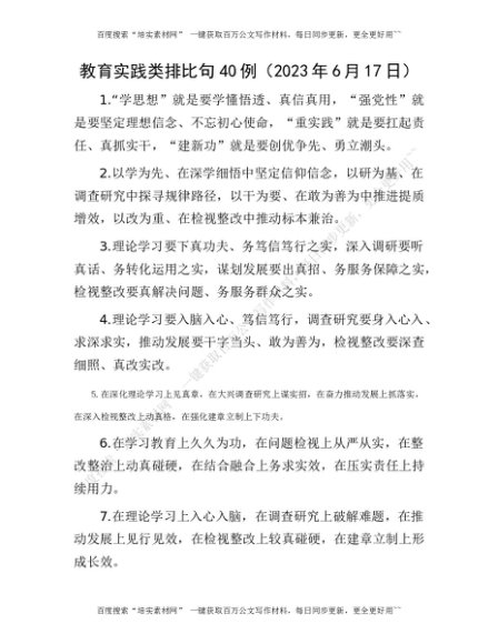 教育实践类排比句40例(2023年6月17日)[更多资源请百度搜索“培实素材网”]