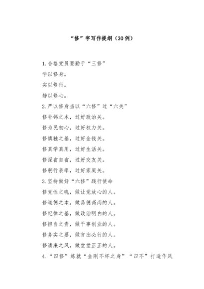 (30例)“修”字写作提纲[更多资源请百度搜索“培实素材网”]