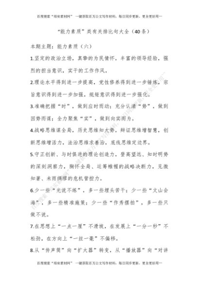 “能力素质”类有关排比句大全(40条)_4[更多资源请百度搜索“培实素材网”]