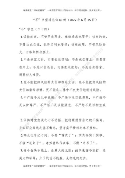 “不”字型排比句40例(2022年6月25日)[更多资源请百度搜索“培实素材网”]