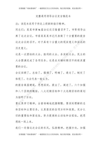 完整通用领导会议发言稿范本[更多资源请百度搜索“培实素材网”]