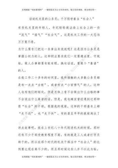 话说机关里的公务员:千万别学着当“社会人”[更多资源请百度搜索“培实素材网”]