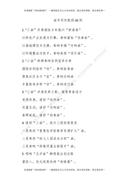 曲字写作提纲30例[更多资源请百度搜索“培实素材网”]