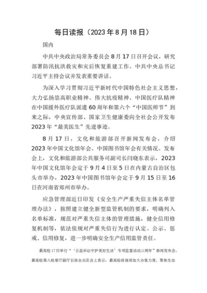 每日读报(2023年8月18日)[更多资源请百度搜索“培实素材网”]