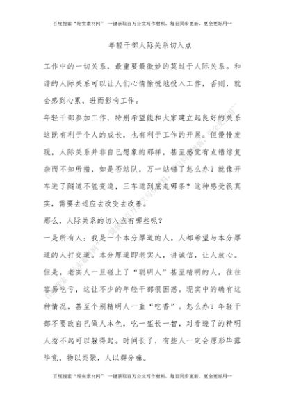 年轻干部人际关系切入点[更多资源请百度搜索“培实素材网”]