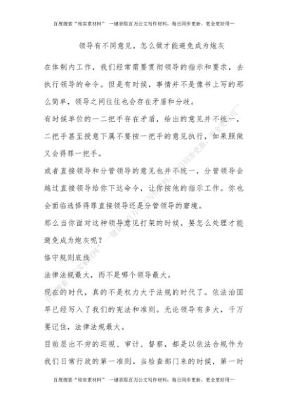 领导有不同意见,怎么做才能避免成为炮灰[更多资源请百度搜索“培实素材网”]