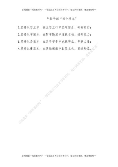 年轻干部“四个根本”[更多资源请百度搜索“培实素材网”]