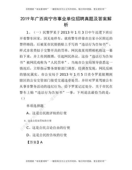 2019年广西南宁市事业单位招聘真题及答案[更多资源请百度搜索“培实素材网”]