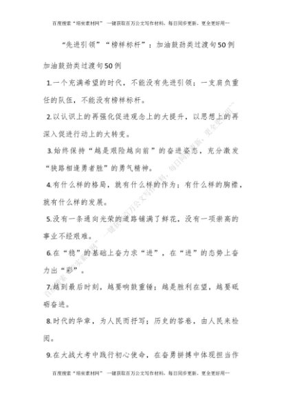 “先进引领”“榜样标杆”:加油鼓劲类过渡句50例[更多资源请百度搜索“培实素材网”]