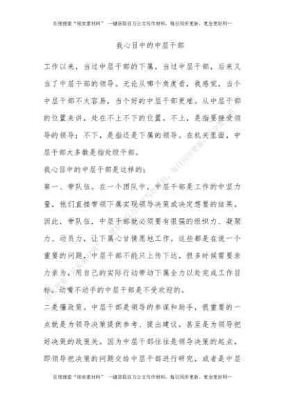 我心目中的中层干部[更多资源请百度搜索“培实素材网”]