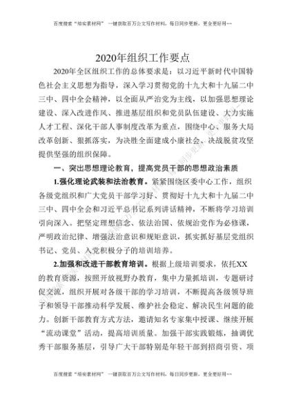 2020032892年组织工作要点[更多资源请百度搜索“培实素材网”]