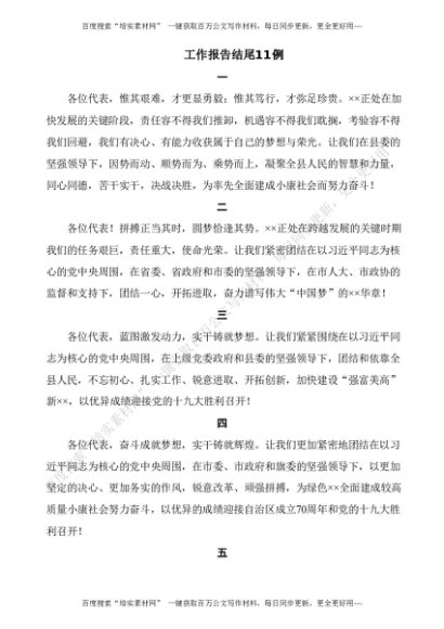 【语句类】工作报告结尾11例[更多资源请百度搜索“培实素材网”]