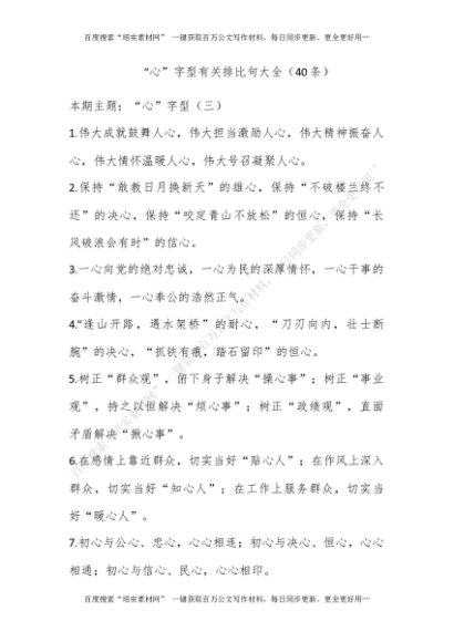 “心”字型有关排比句大全(40条)_1[更多资源请百度搜索“培实素材网”]