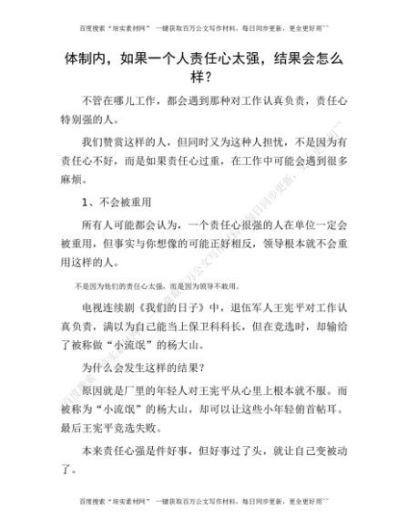 体制内,如果一个人责任心太强,结果会怎么样?[更多资源请百度搜索“培实素材网”]