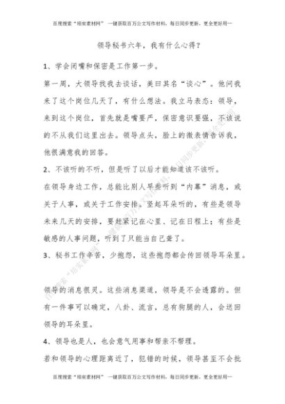 领导秘书六年,我有什么心得?[更多资源请百度搜索“培实素材网”]