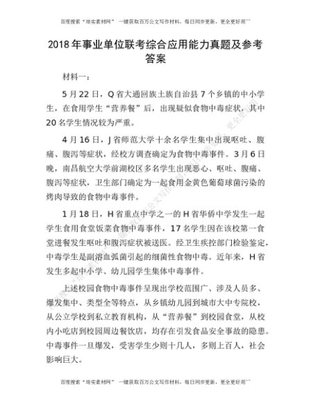 2018年事业单位联考综合应用能力真题及参考答案[更多资源请百度搜索“培实素材网”]