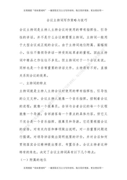 会议主持词写作策略与技巧[更多资源请百度搜索“培实素材网”]