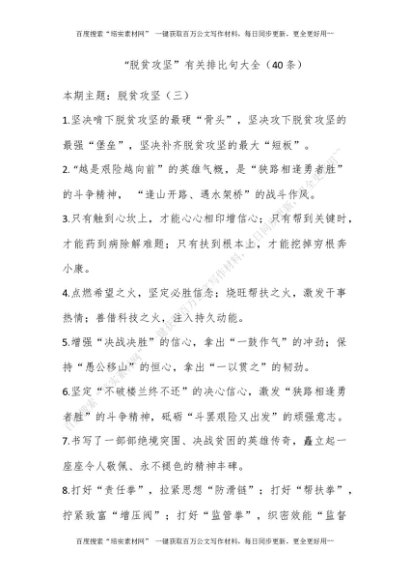 “脱贫攻坚”有关排比句大全(40条)_1[更多资源请百度搜索“培实素材网”]