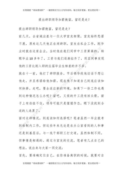 提出辞职领导加薪挽留,留还是走?[更多资源请百度搜索“培实素材网”]