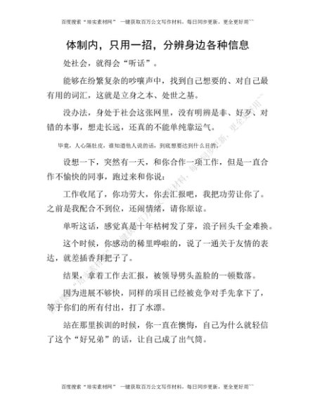体制内,只用一招,分辨身边各种信息[更多资源请百度搜索“培实素材网”]