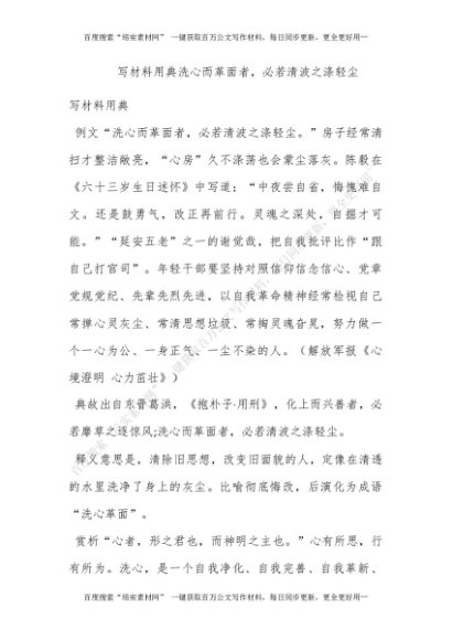 【写材料用典】洗心而革面者,必若清波之涤轻尘[更多资源请百度搜索“培实素材网”]