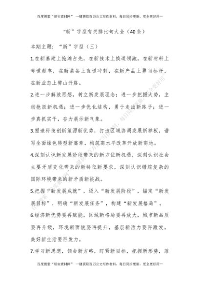 “新”字型有关排比句大全(40条)_1[更多资源请百度搜索“培实素材网”]