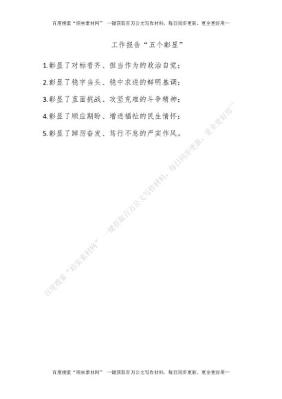 工作报告“五个彰显”[更多资源请百度搜索“培实素材网”]
