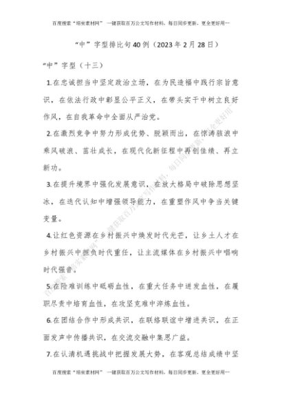 “中”字型排比句40例(2023年2月28日)[更多资源请百度搜索“培实素材网”]
