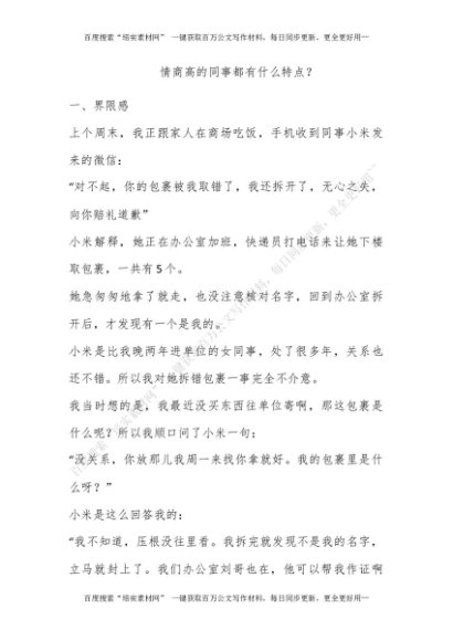 情商高的同事都有什么特点?[更多资源请百度搜索“培实素材网”]