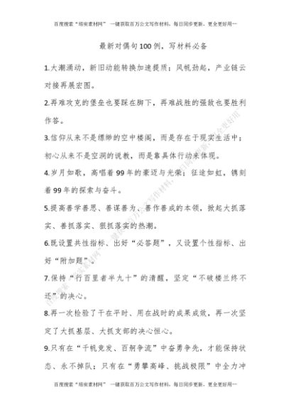 最新对偶句100例,写材料必备![更多资源请百度搜索“培实素材网”]