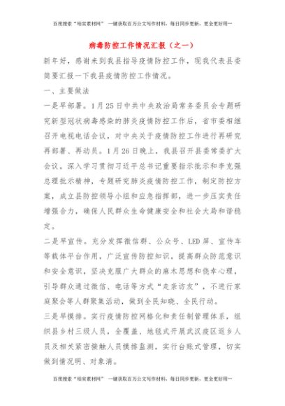 病毒防控工作情况汇报3篇[更多资源请百度搜索“培实素材网”]