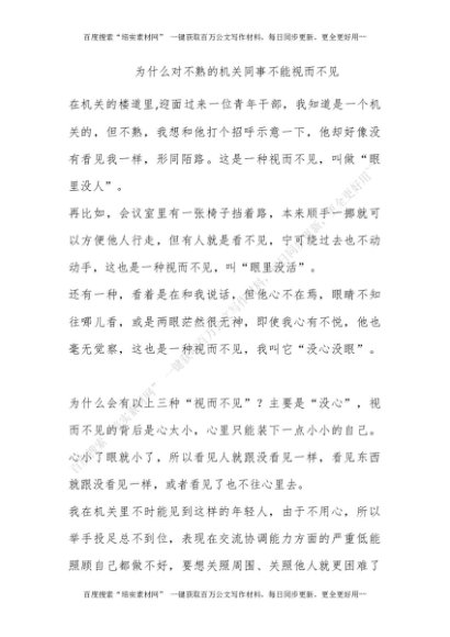 为什么对不熟的机关同事不能视而不见[更多资源请百度搜索“培实素材网”]