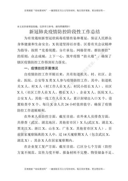 2020030191新冠肺炎疫情防控阶段性工作总结[更多资源请百度搜索“培实素材网”]