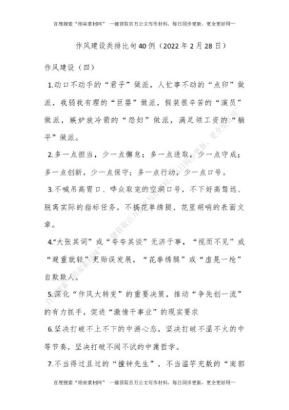 作风建设类排比句40例(2022年2月28日)[更多资源请百度搜索“培实素材网”]