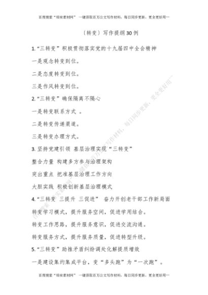 〔转变〕写作提纲30例[更多资源请百度搜索“培实素材网”]