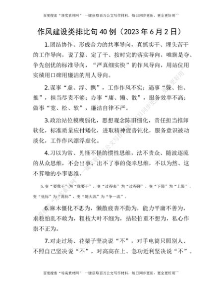 作风建设类排比句40例(2023年6月2日)[更多资源请百度搜索“培实素材网”]