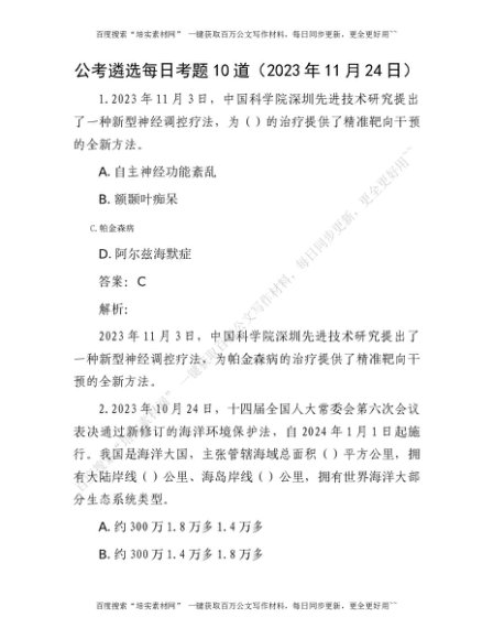 公考遴选每日考题10道(2023年11月24日)[更多资源请百度搜索“培实素材网”]