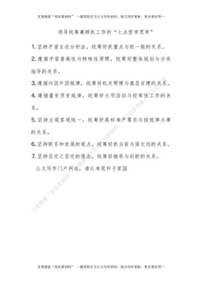 领导统筹兼顾抓工作的“七点哲学思考”[更多资源请百度搜索“培实素材网”]